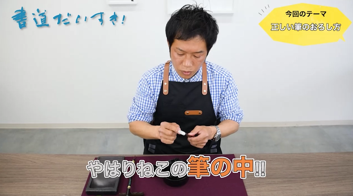 しかし、それが筆にとって良くないことだと気づき、今回は正しい筆の下ろし方を視聴者に伝えています。