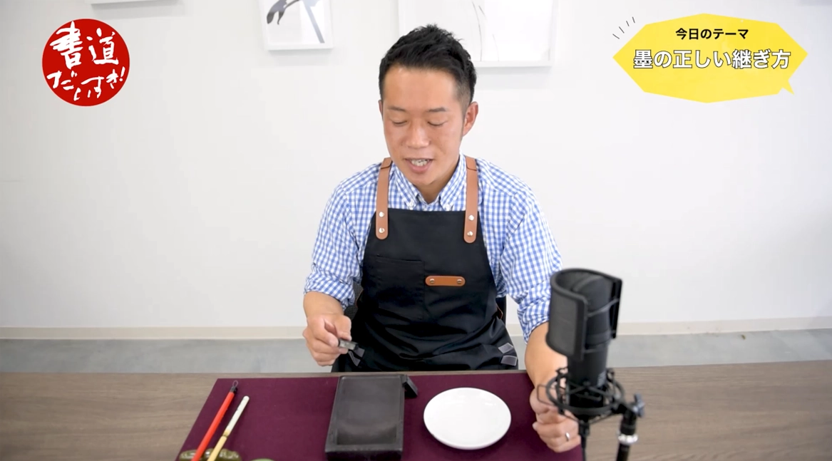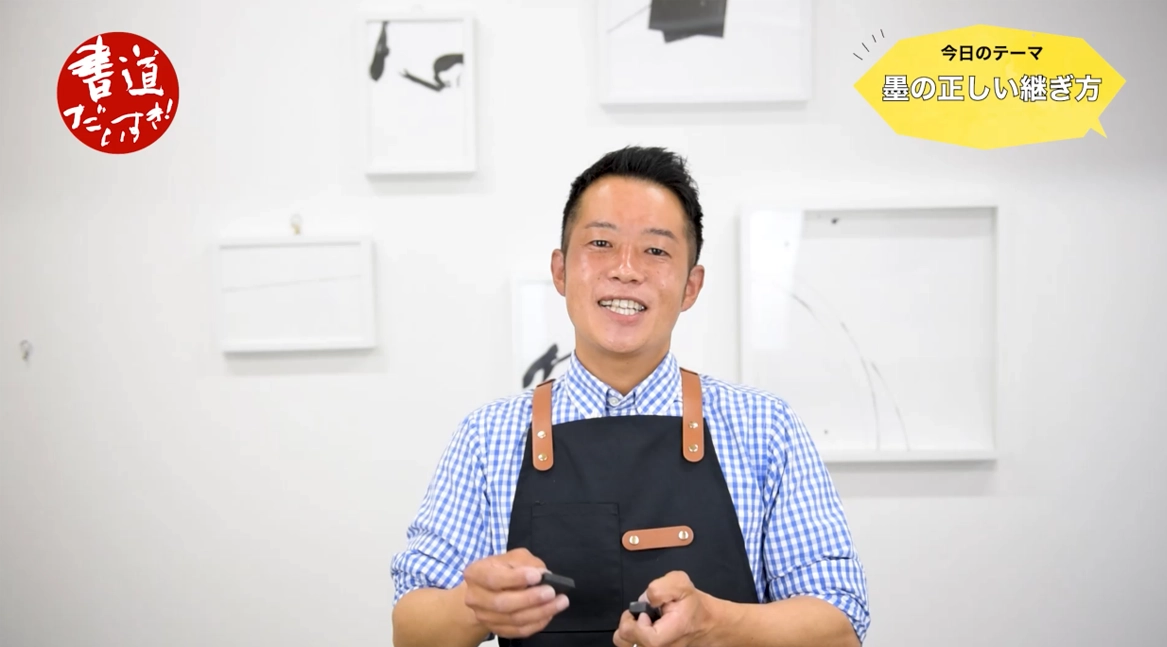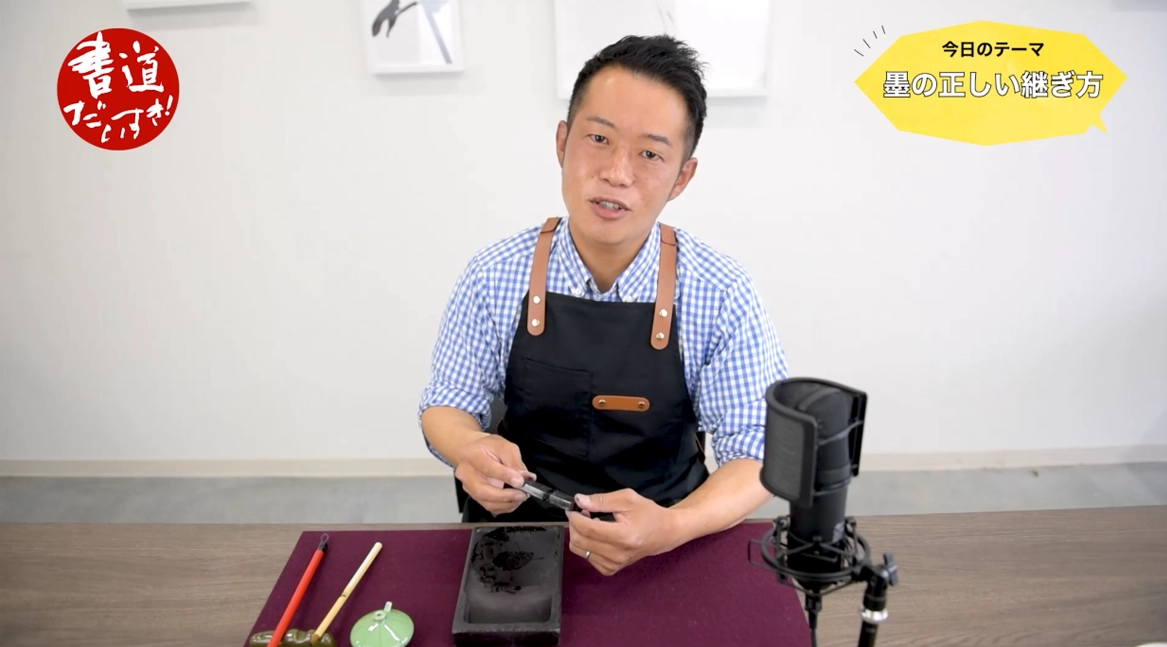 書道大好き島内による墨の正しい継ぎ方についての実演動画の内容です。
