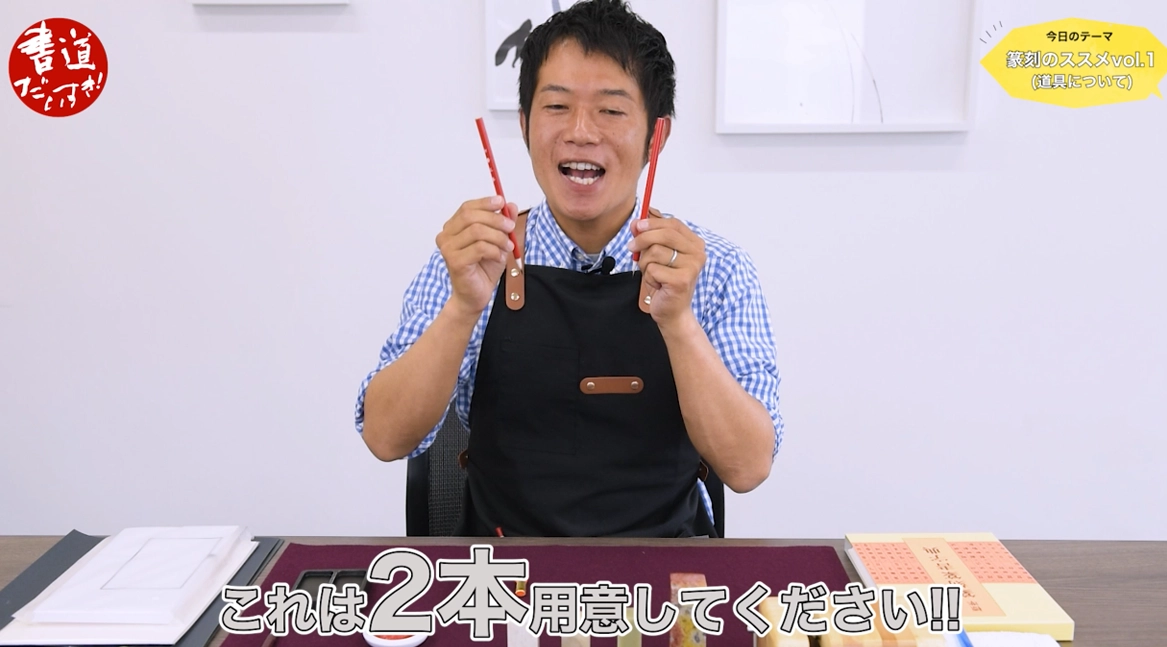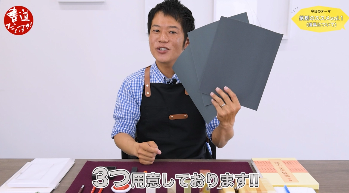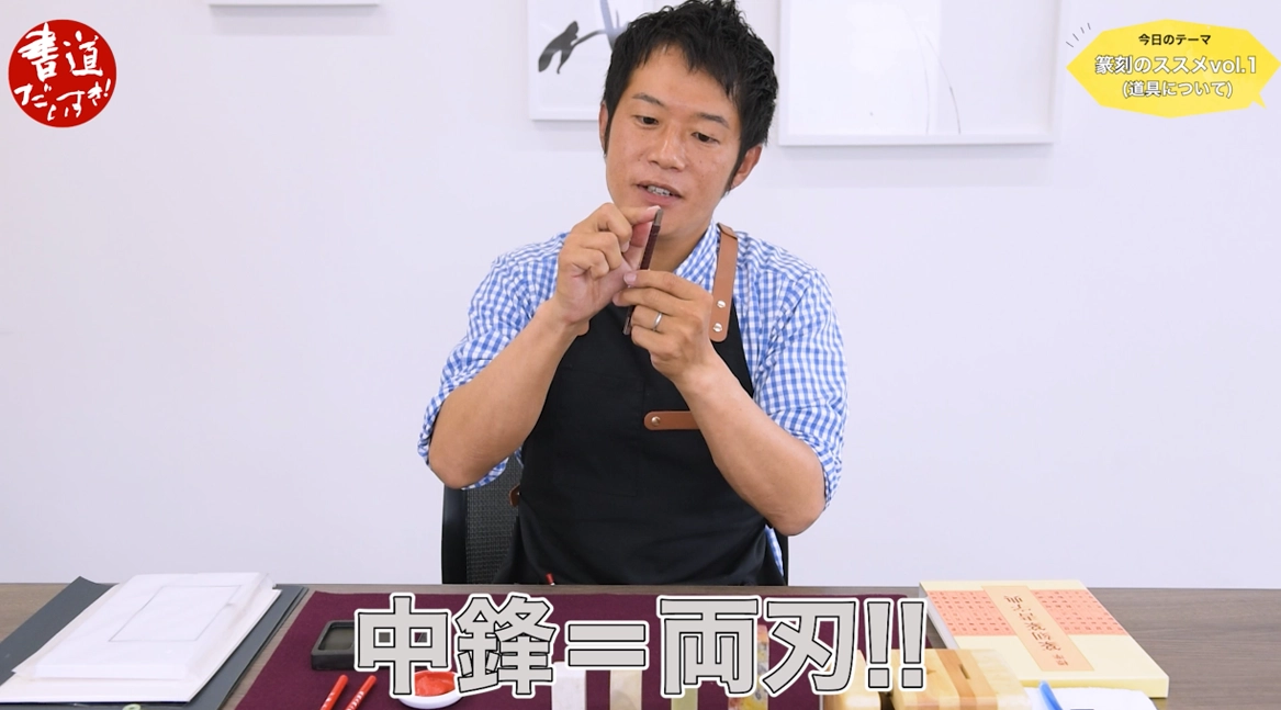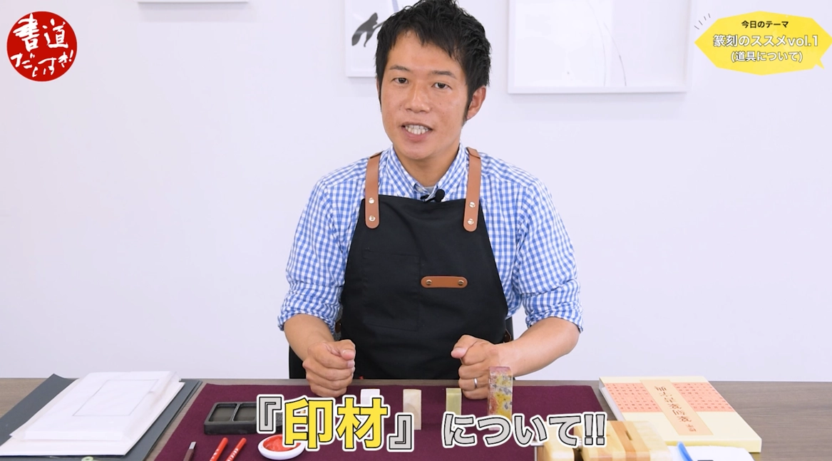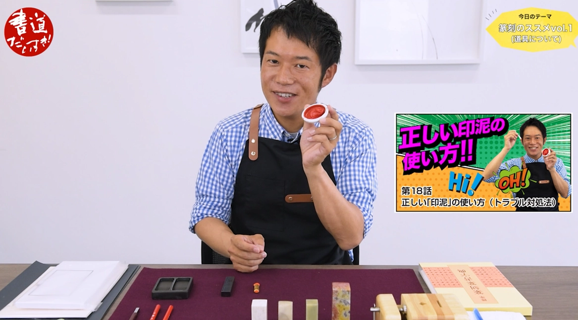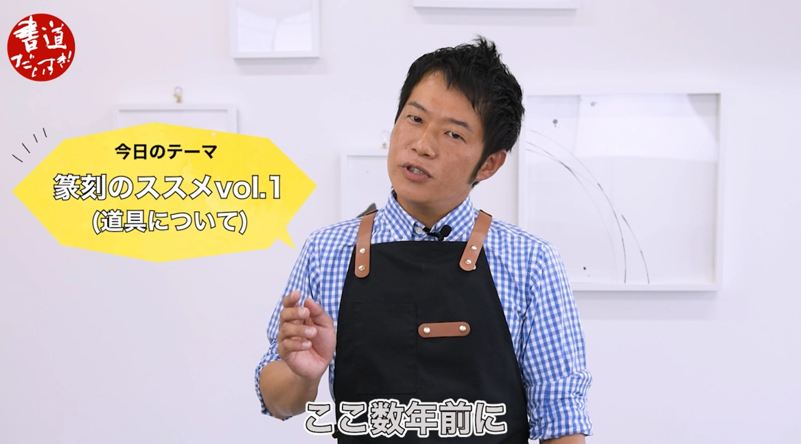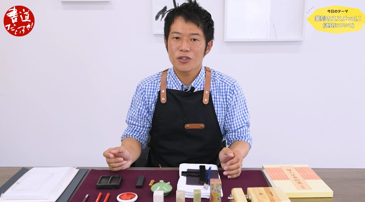 島内氏は篆刻(篆刻)について数回に分けて動画を配信する予定であり、今回は第一回目として篆刻の道具について詳しく解説しています。