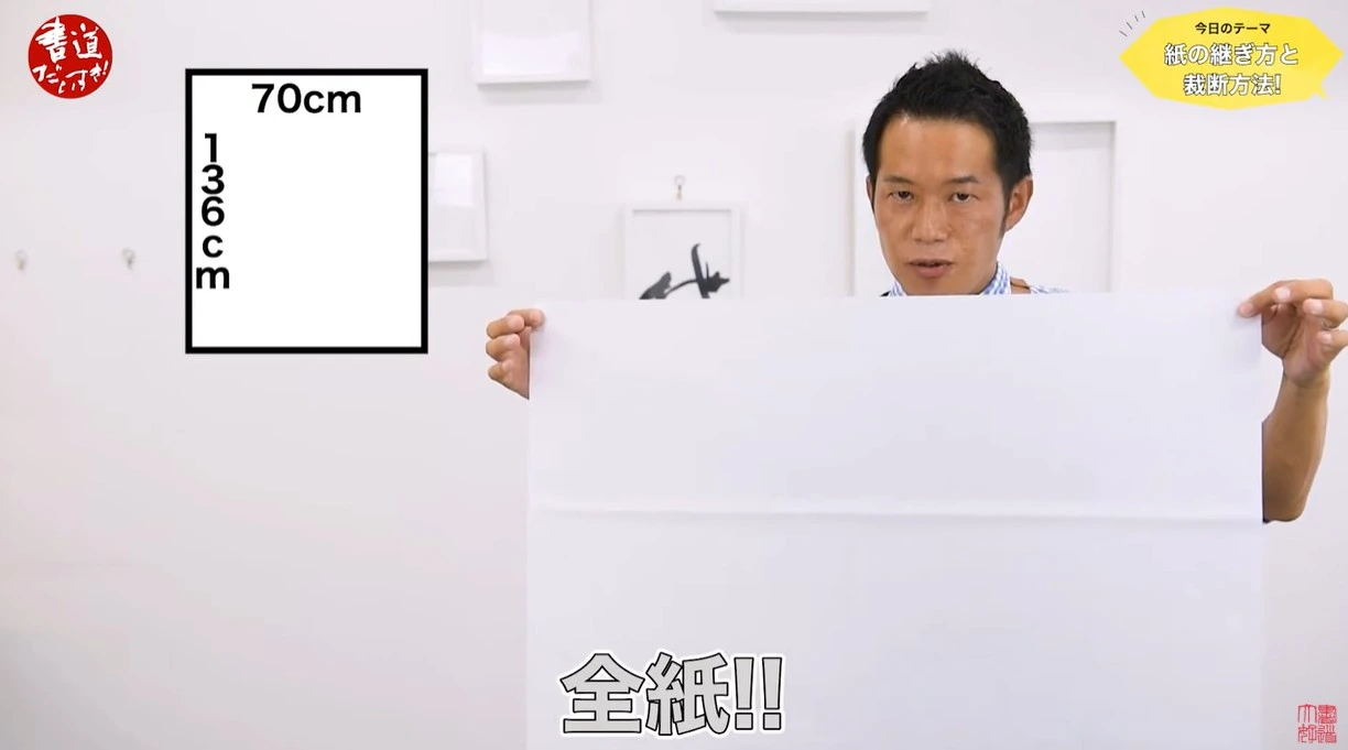 そのような形でお送りしたいと思います。それでは皆さんの参考になるために熱くか次やってしまいます。どうぞ、まずですね、今回はこの全紙、この全紙がね、もう書きやすくてたまりませんので、この全紙をどのサイズにするから継ぐかと言いますと、