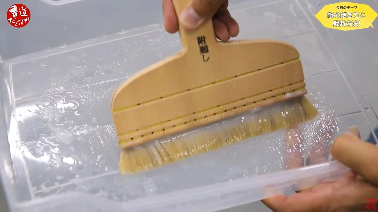 ついた部分が筆に引っかかってしまうんですね。ですから、必ずのりを張った方ですね。のり付けをした方、のりがついてない方の紙が上になるように使ってください。そして、ちょっと細かい話になるんですが、最後にですねえ、
