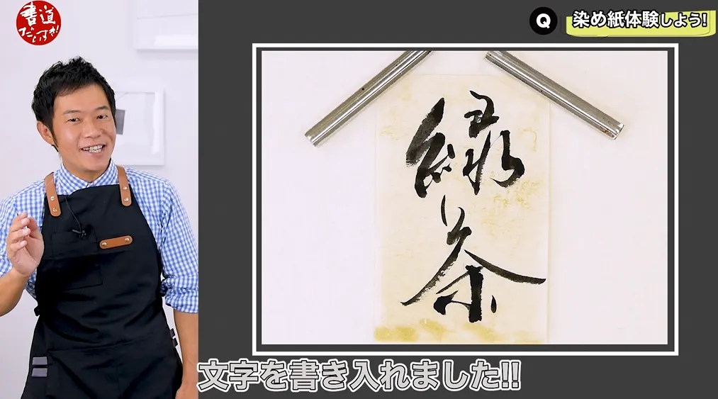 それでまず文字を書く。そして染め上がった紙にまた同じ文字を重ねて書く。ちょっと面白いんじゃないですか?挑戦する価値あると思います。いかがでしたでしょうか?出来上がった既製商品を使われるのもいいんですが、