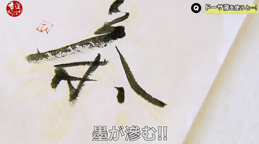 動作機で書いた部分の上に墨を載せる方が、墨がちょっとにじむんですね。いや、もうまた不思議も訳分からないですねっていうふうな感じで。ちょっと面白い結果になりましたので、お伝えしておきます。ですので動作記まあ透明ですから見にくいですが、