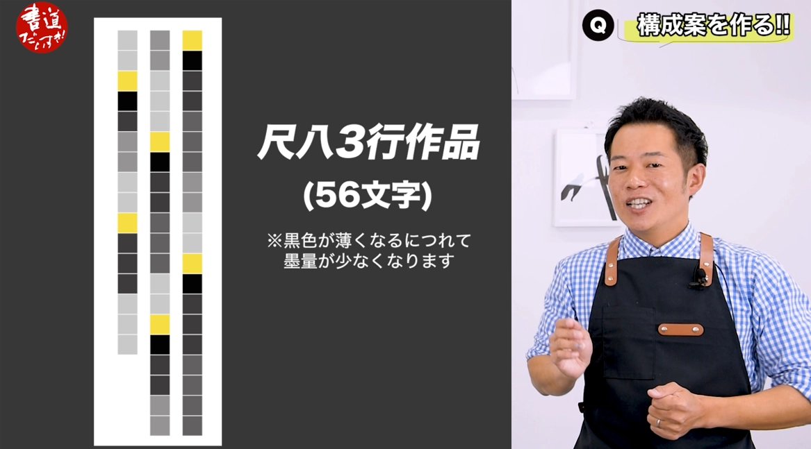 書道の作品制作は一見簡単そうに見えるが、実際には様々な要素を考慮する必要があることを説明しています。