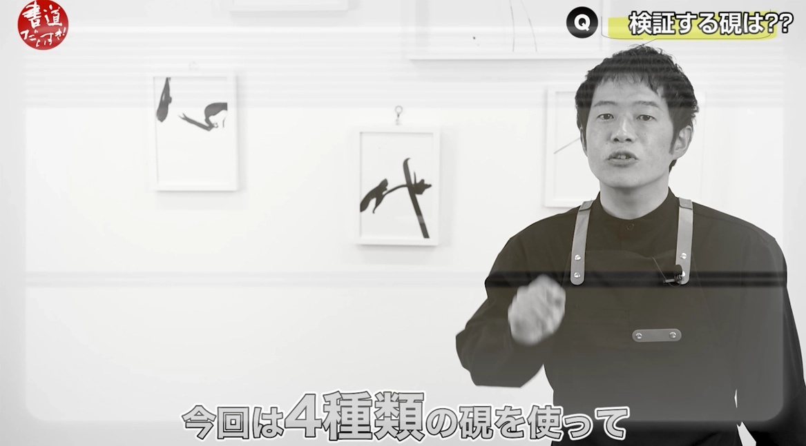 この動画では、書道大好きしまうち氏が4種類の硯(すずり)を比較検証しています。