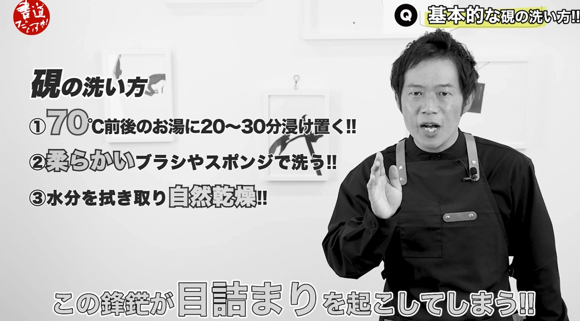 しまうち氏は最後に、目立ては硯を傷つけるリスクがあるため最終手段であり、まずは正しい洗い方を見直すことが重要だと締めくくりました。