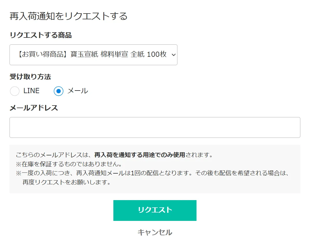 ■リクエストする商品:再入荷通知したい商品を選択してください。
